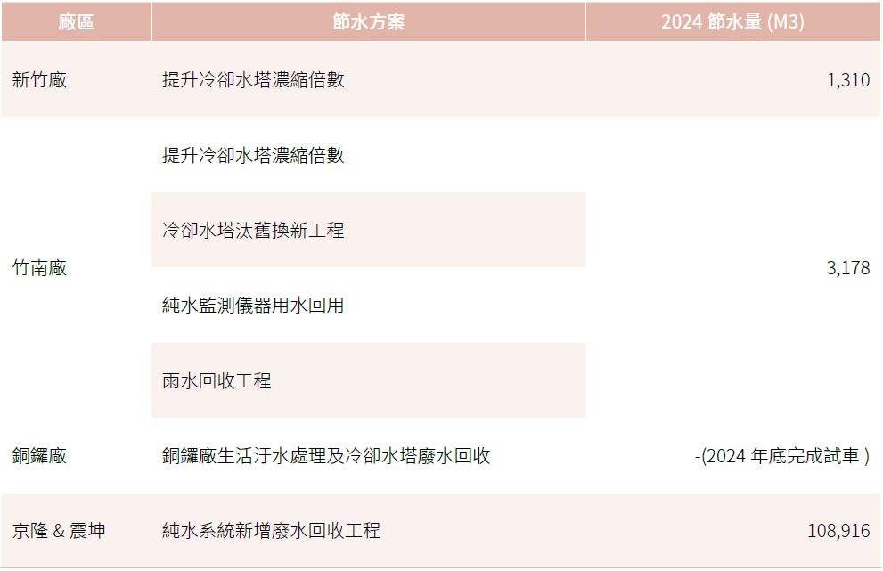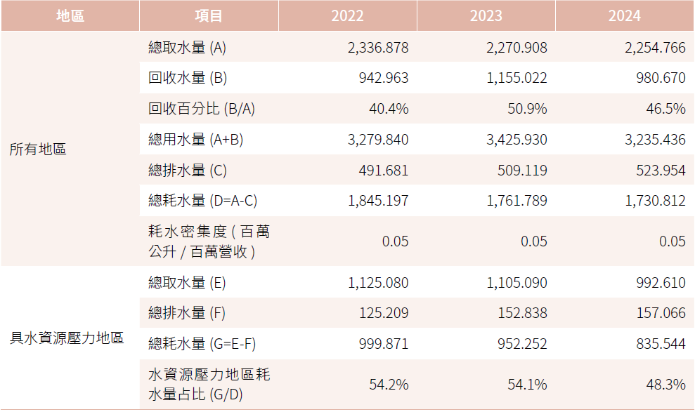 註2:回收水量= 回收系統、雨水回收、純水再利用