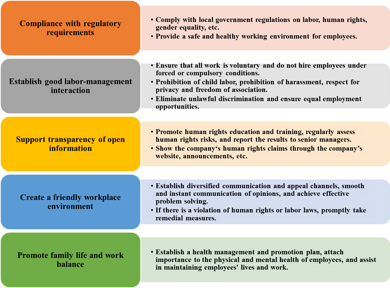 KYEC has established a Human Rights Policy to eliminate any violations of human rights, ensuring the protection of all employees (including contract and temporary personnel), suppliers, contractors (including suppliers providing contract workers), business partners, and local community residents, all of whom must comply with this policy.
