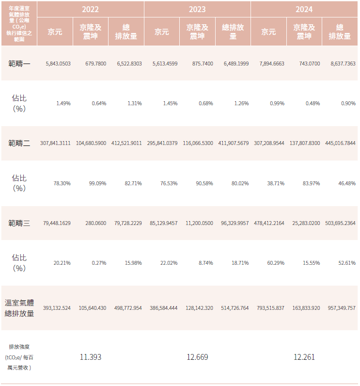 註2:2024年京元(KYEC)採用GHG Protocol盤查標準;京隆&震坤採用ISO 14064-2018盤查標準