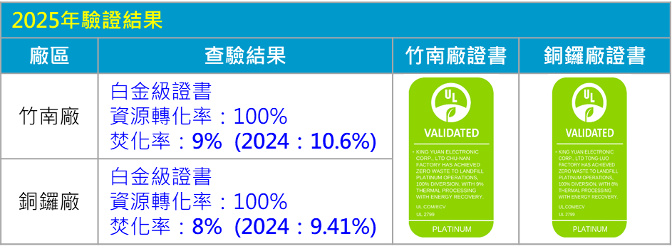 本公司自112年度推動UL2799廢棄物零填埋驗證,透過回收、再利用、堆肥等方式處理,來達到廢棄物轉資源化的永續目標,竹南廠及銅鑼廠實現「100%廢棄物轉化率」。